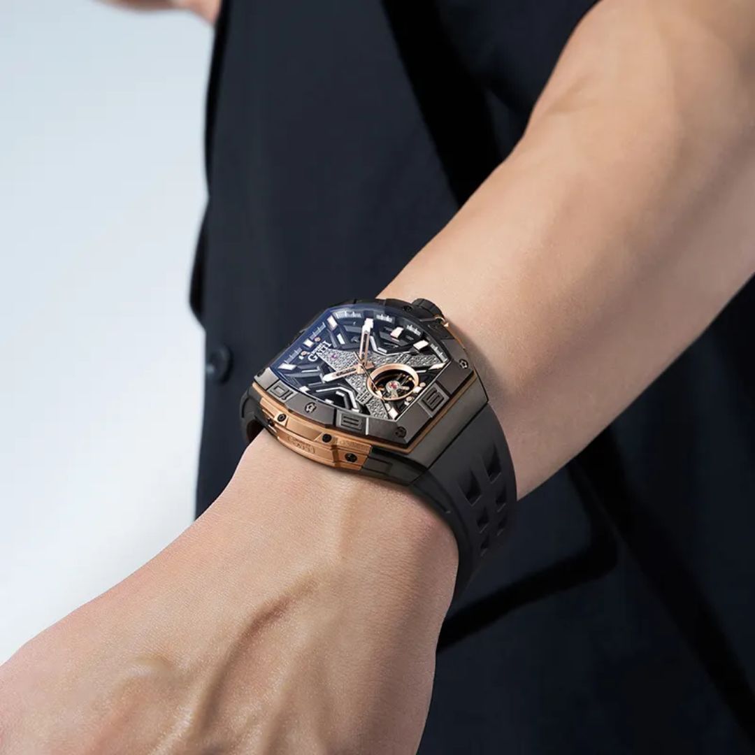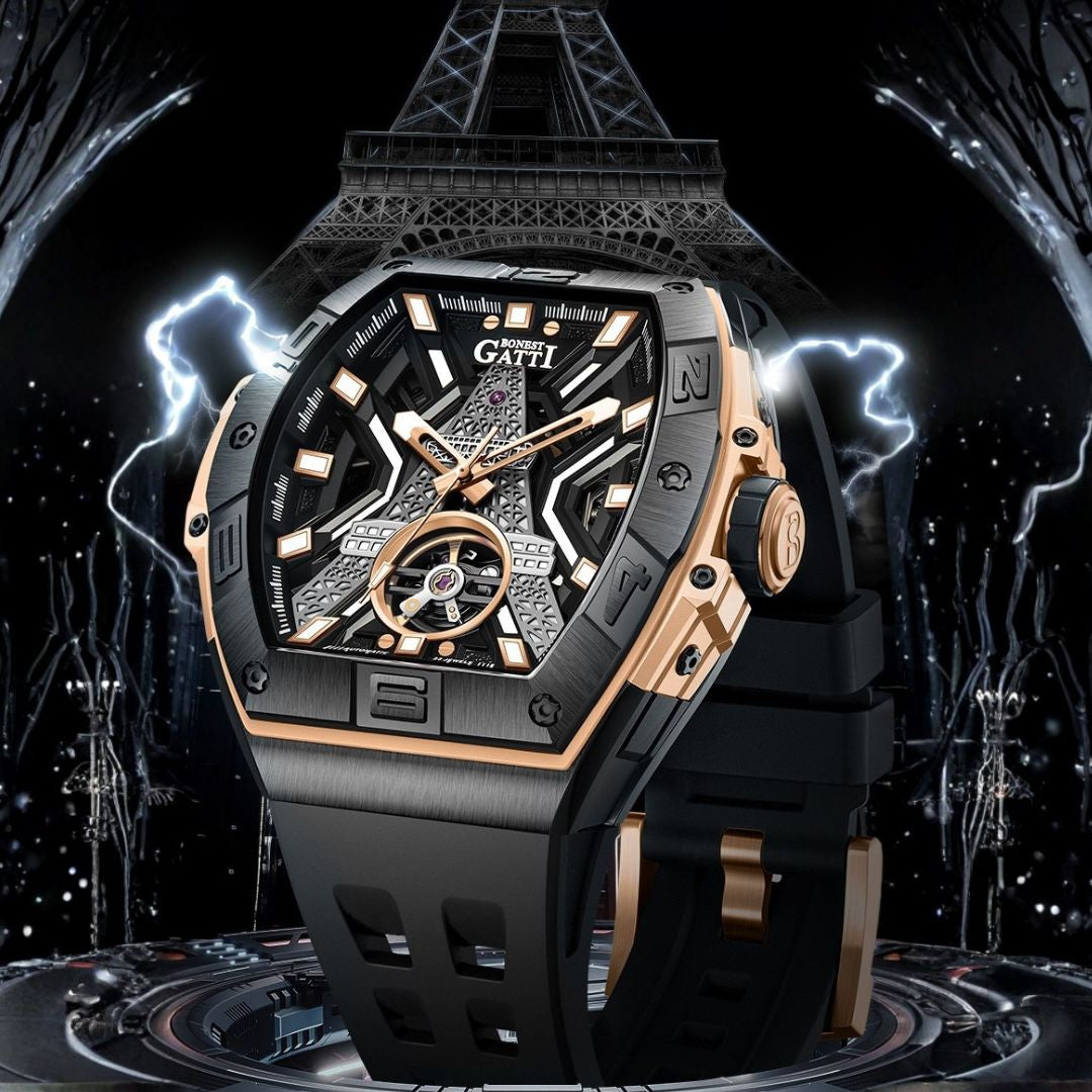 El BG5001 representa una nueva forma de entender el tiempo: no como una medida, sino como una expresión de poder, diseño y carácter. Su arquitectura mecánica visible inspirada en la estructura de la Torre Eiffel transforma cada segundo en una obra de ingeniería viva, donde la precisión se convierte en estética. Cada línea del dial, cada capa estructural y cada detalle metálico han sido diseñados para transmitir dominio visual y sofisticación técnica. No es un reloj para seguir tendencias, es un reloj para quienes saben quiénes son.