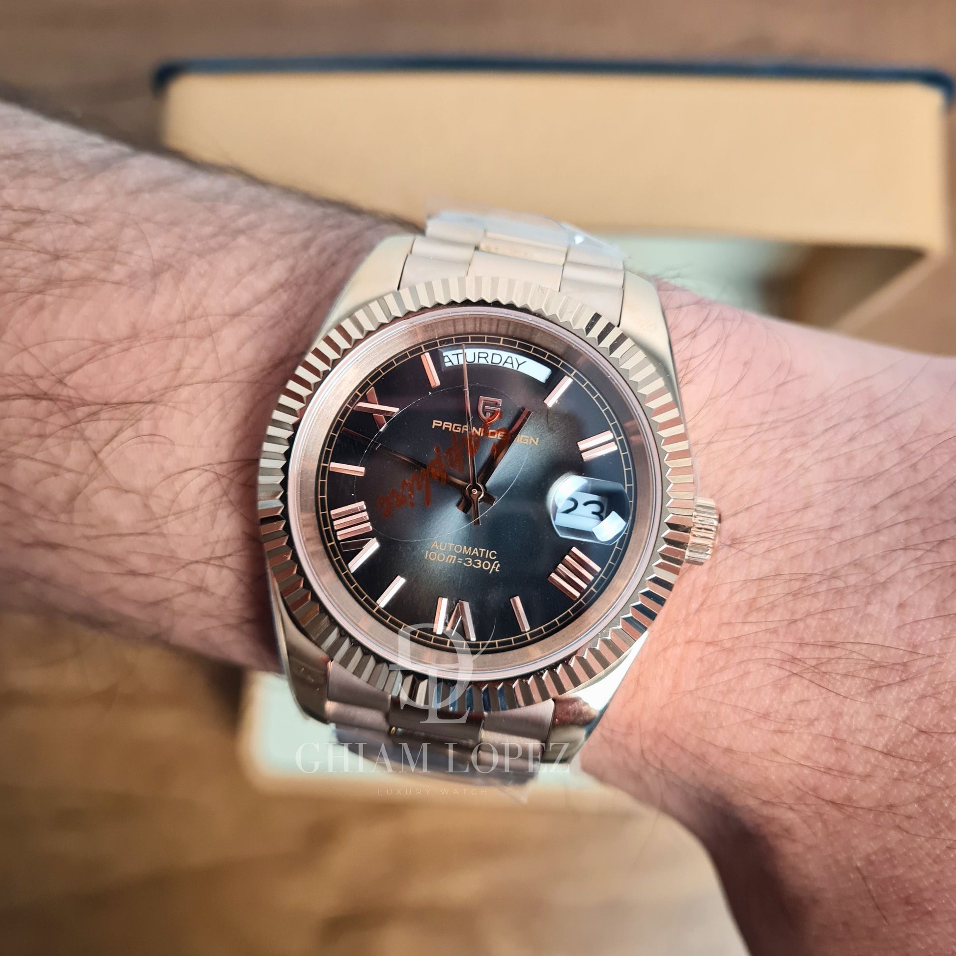 Reloj Automático PAGANI DESIGN DAYDATE 40MM, PD-1783 - Oro Rosa Negro