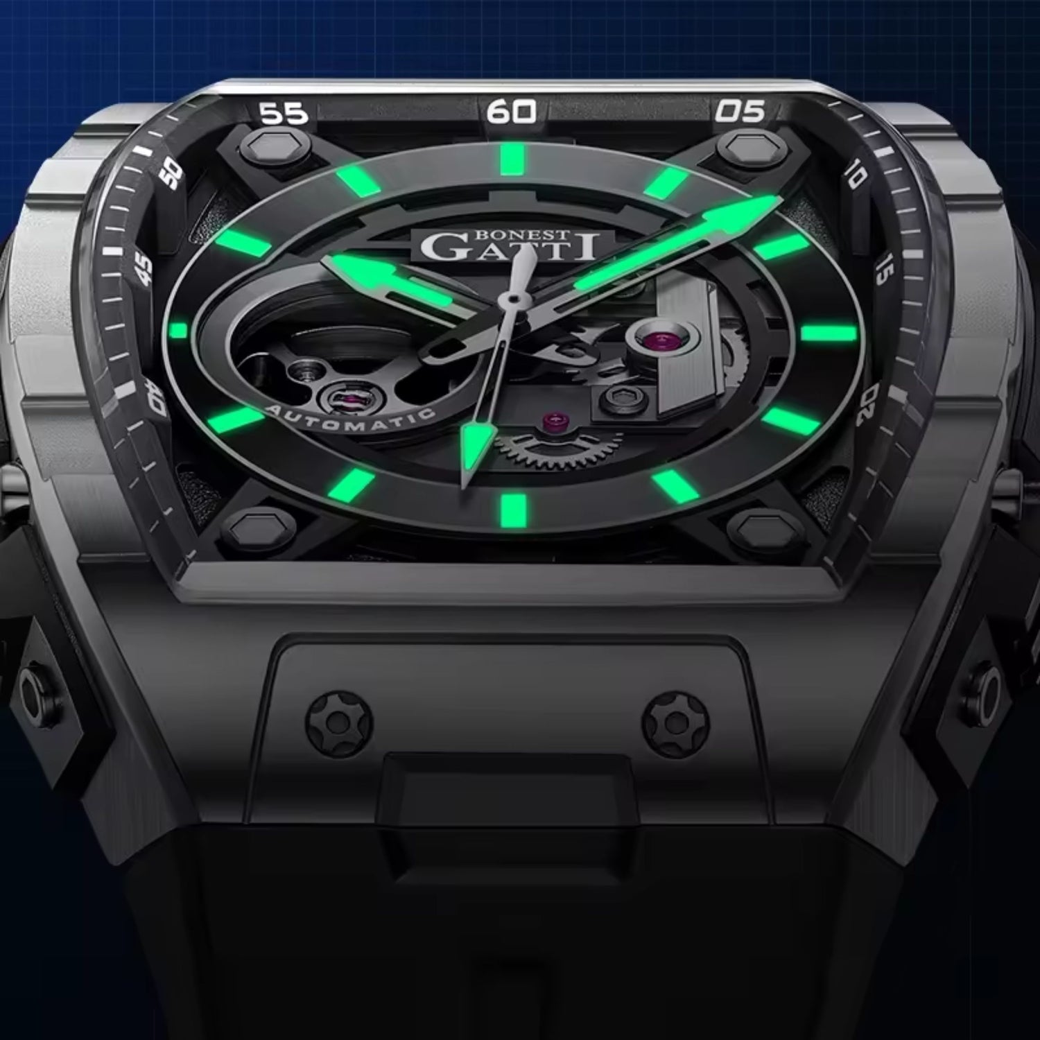 El BONEST GATTI BG5602 de la colección GHOST SPEED representa la fusión entre ingeniería mecánica y diseño futurista. Su arquitectura esqueleto revela un universo de engranajes en constante movimiento, transmitiendo energía, precisión y carácter desde cualquier ángulo. Cada línea, cada tornillo y cada capa reflejan una obsesión por el detalle. No es solo un reloj: es una máquina viva diseñada para quienes buscan destacar sin pedir permiso.